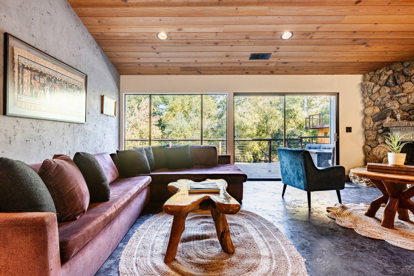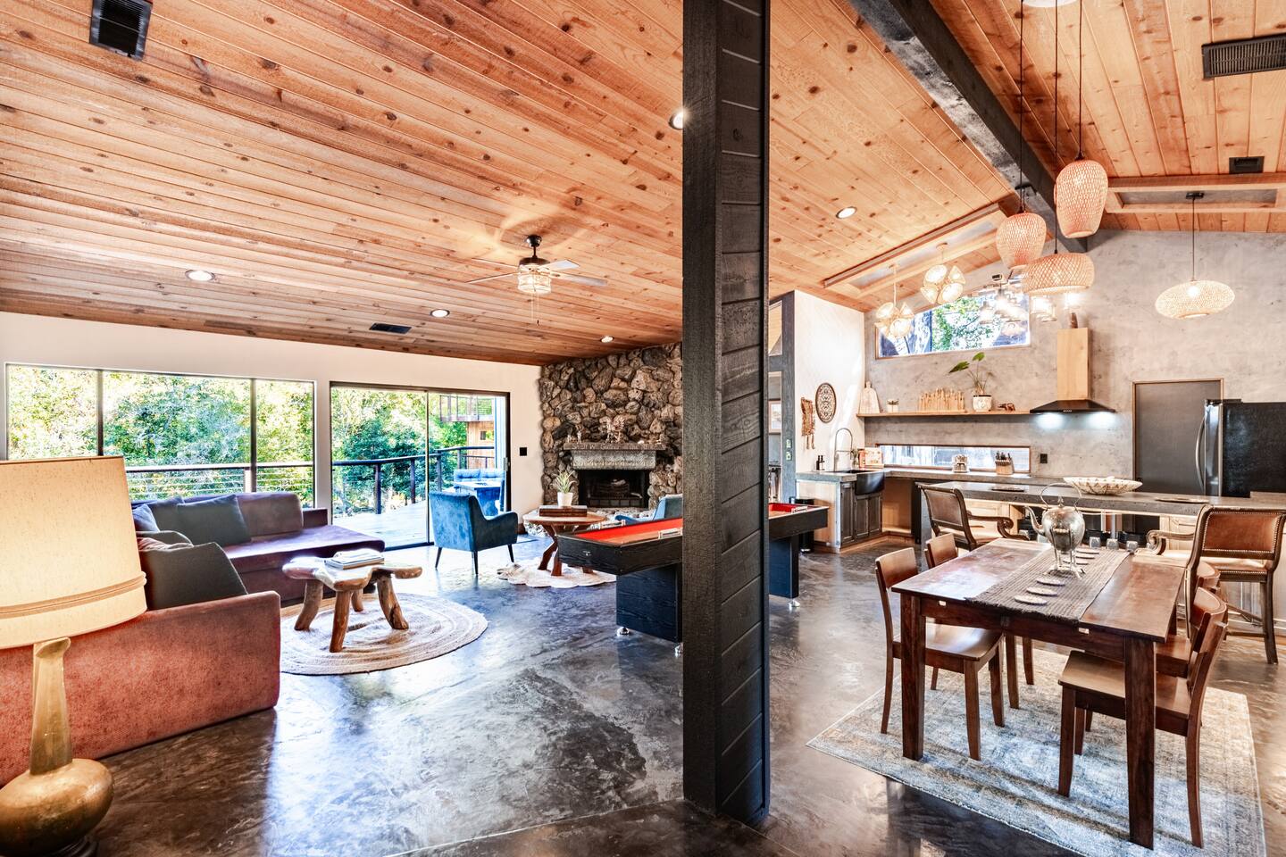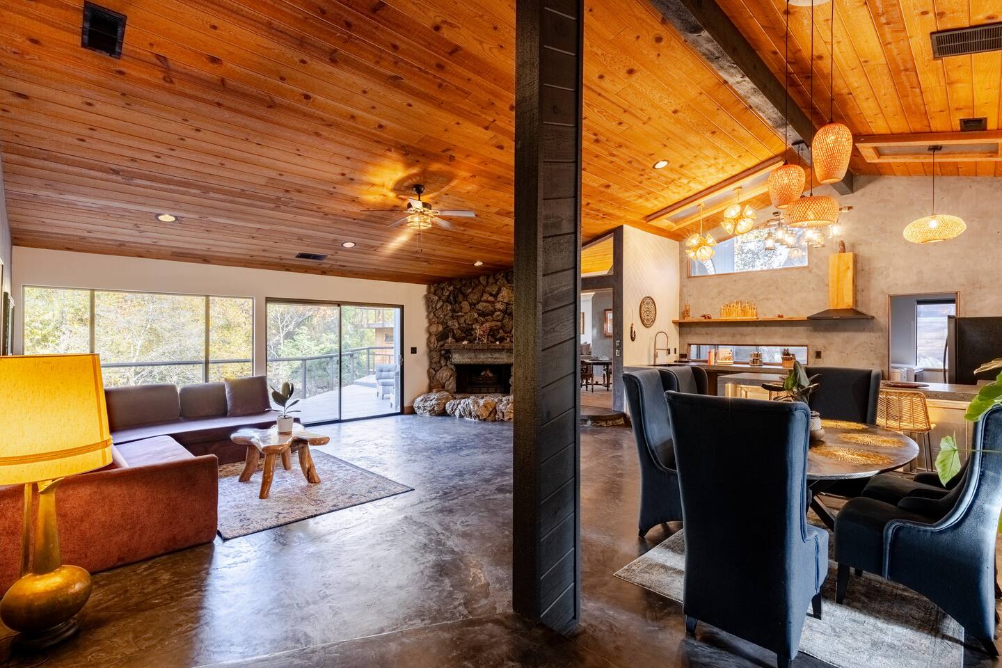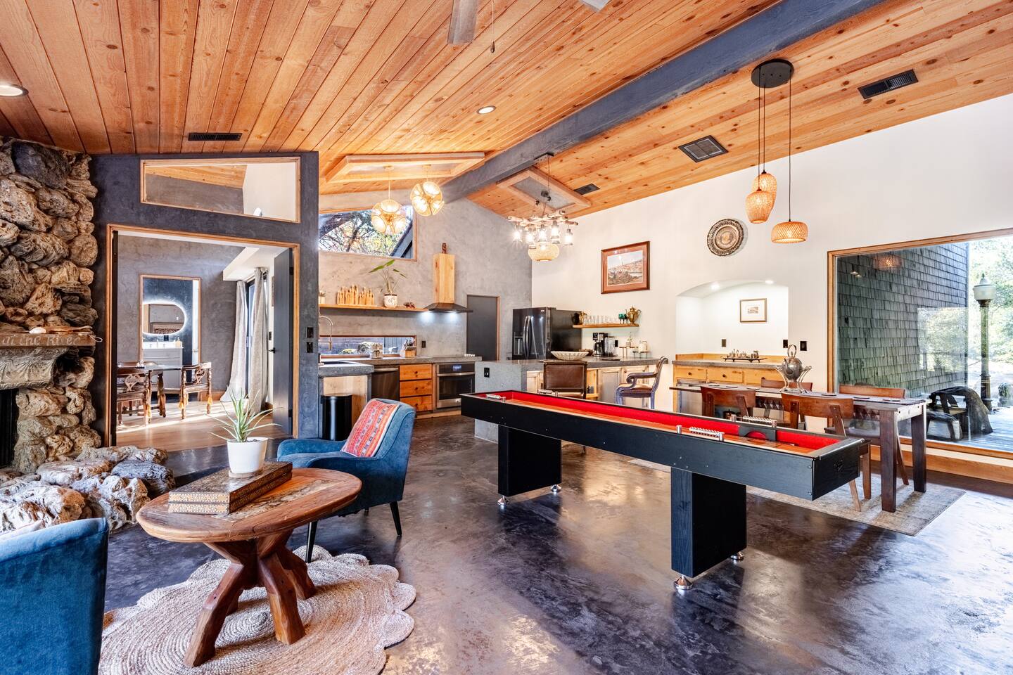 River Soul offers a serene riverfront escape in Cherokee Oaks, Three Riversโ most prestigious neighborhood. ๐ฟ Private River Access ๐ก Modern Design โ A luxurious fusion of nature and contemporary elegance with 2 Master Bedrooms ๐ฅ Cozy Living Spaces โ Relax by the river rock fireplace ๐๏ธ Art-Inspired Bedrooms โ Plush beds, river views, and global decor. ๐ Luxury Bathrooms โ Rock sinks and a spa-like bath with nature views. ๐ฝ๏ธ Gourmet Kitchen โ A chefโs dream, fully stocked.