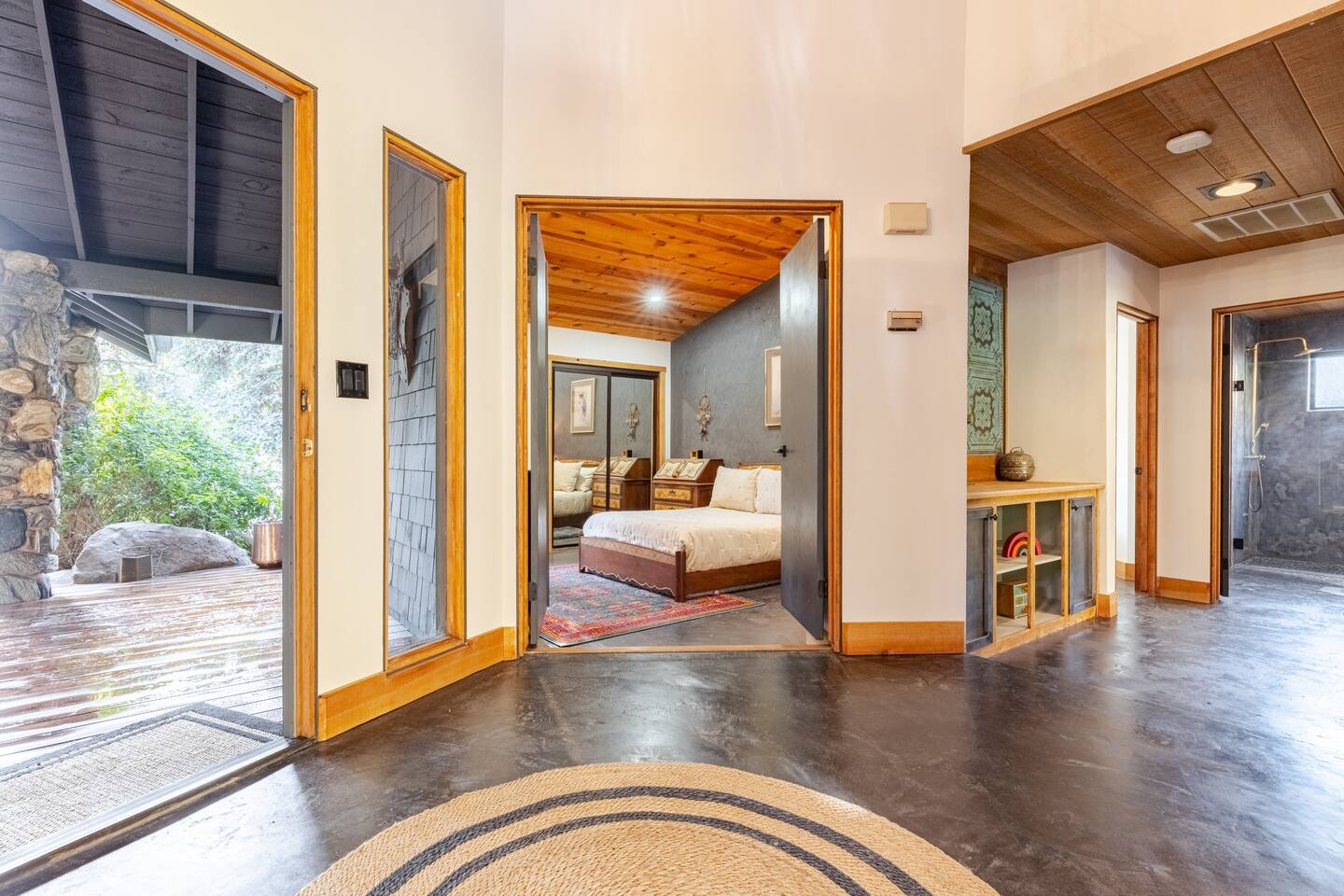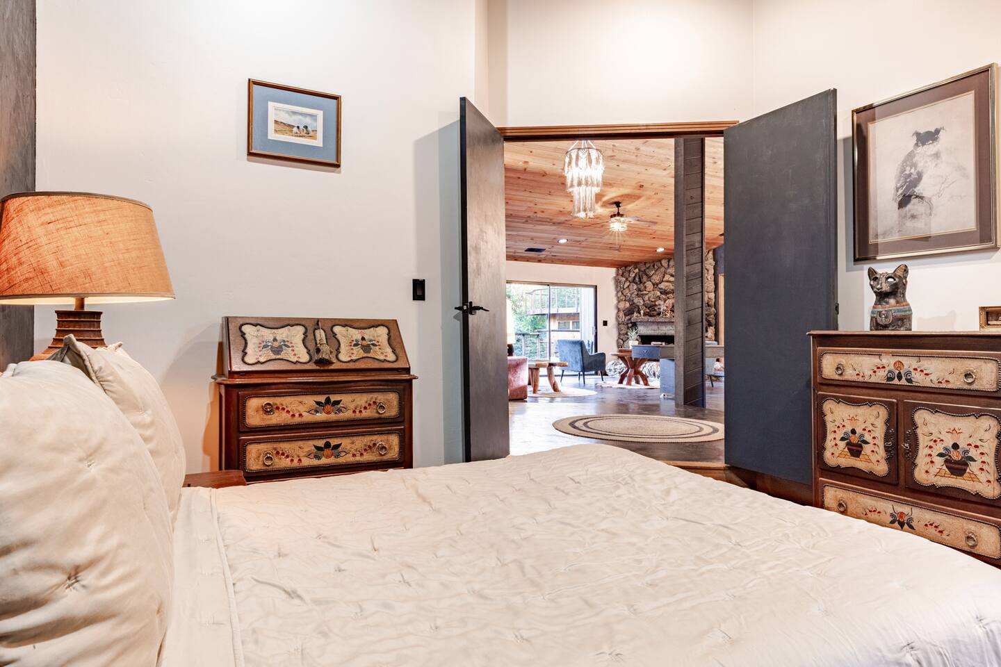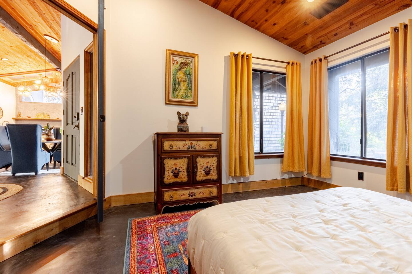 River Soul offers a serene riverfront escape in Cherokee Oaks, Three Riversโ most prestigious neighborhood. ๐ฟ Private River Access ๐ก Modern Design โ A luxurious fusion of nature and contemporary elegance with 2 Master Bedrooms ๐ฅ Cozy Living Spaces โ Relax by the river rock fireplace ๐๏ธ Art-Inspired Bedrooms โ Plush beds, river views, and global decor. ๐ Luxury Bathrooms โ Rock sinks and a spa-like bath with nature views. ๐ฝ๏ธ Gourmet Kitchen โ A chefโs dream, fully stocked.
