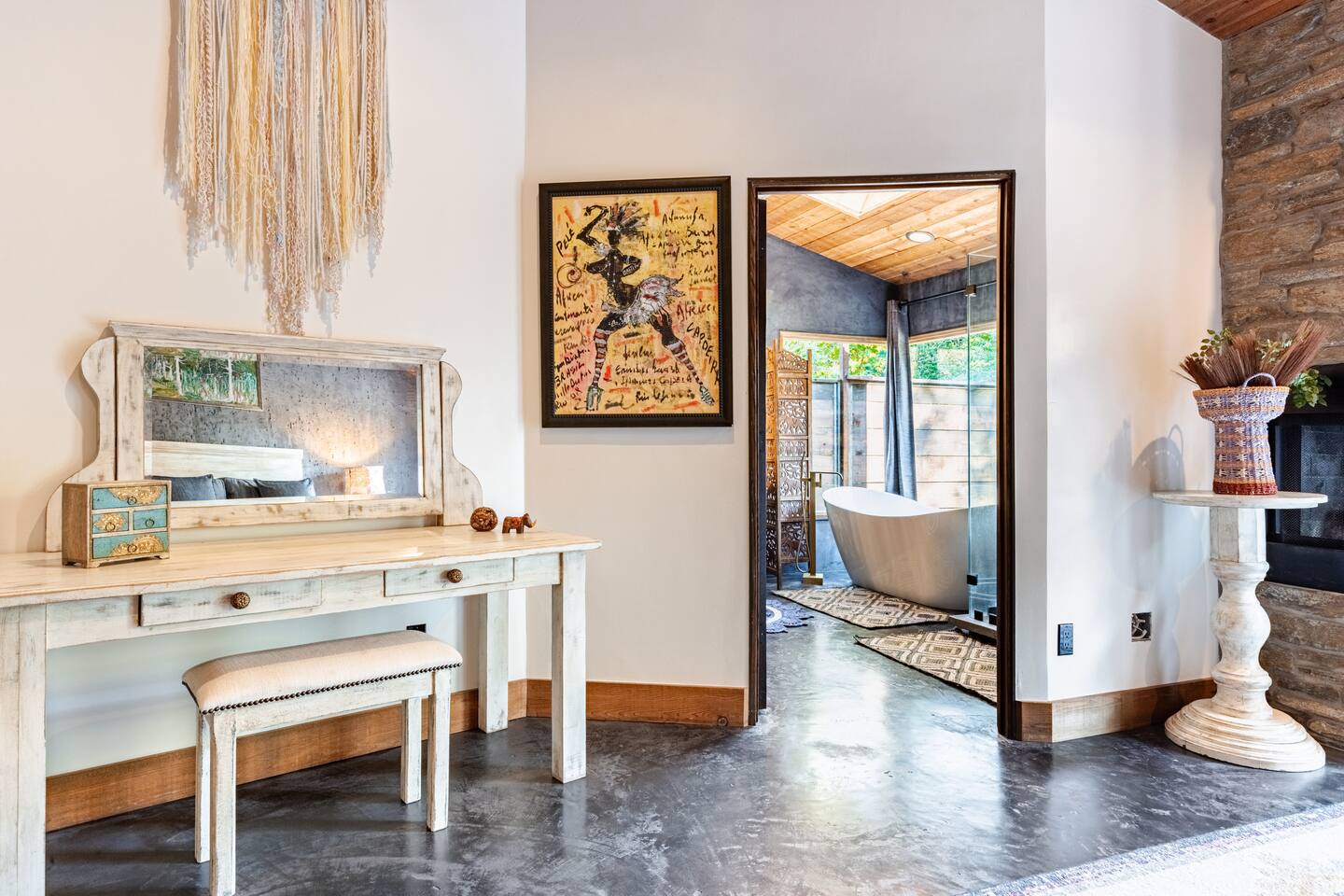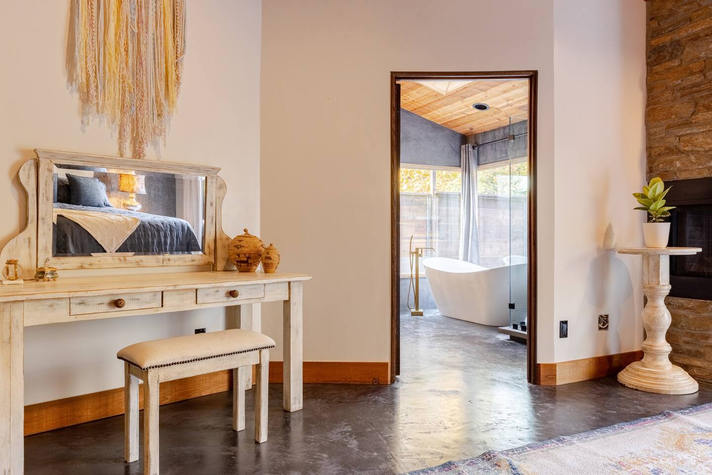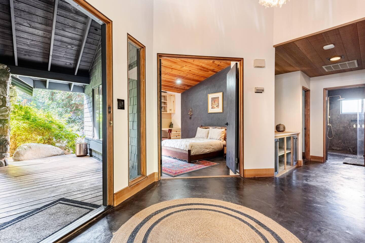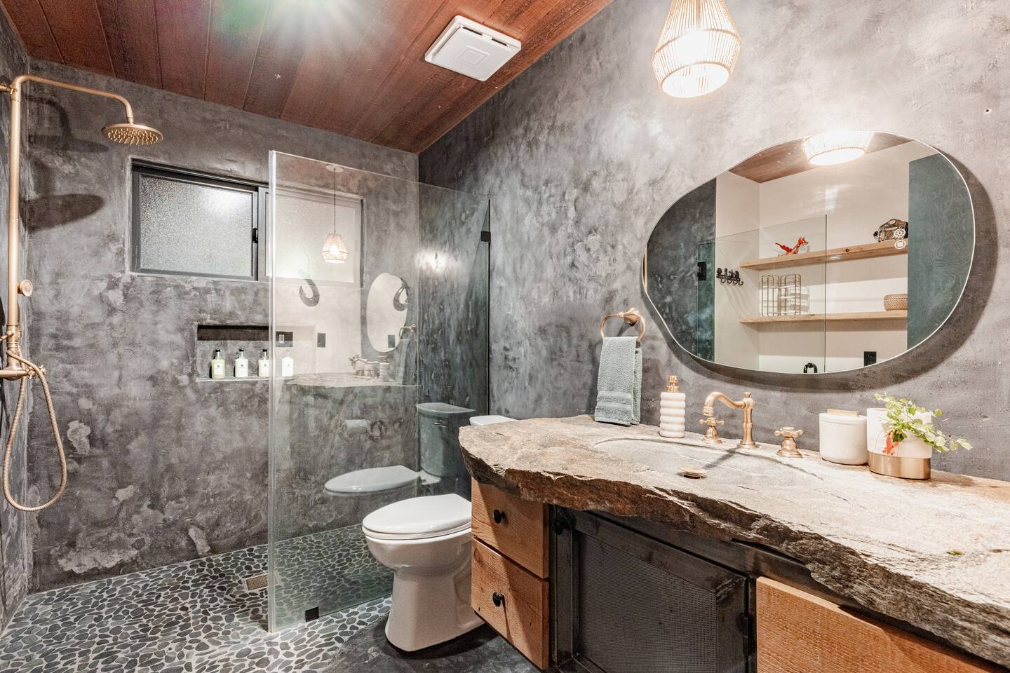 River Soul offers a serene riverfront escape in Cherokee Oaks, Three Riversโ most prestigious neighborhood. ๐ฟ Private River Access ๐ก Modern Design โ A luxurious fusion of nature and contemporary elegance with 2 Master Bedrooms ๐ฅ Cozy Living Spaces โ Relax by the river rock fireplace ๐๏ธ Art-Inspired Bedrooms โ Plush beds, river views, and global decor. ๐ Luxury Bathrooms โ Rock sinks and a spa-like bath with nature views. ๐ฝ๏ธ Gourmet Kitchen โ A chefโs dream, fully stocked.