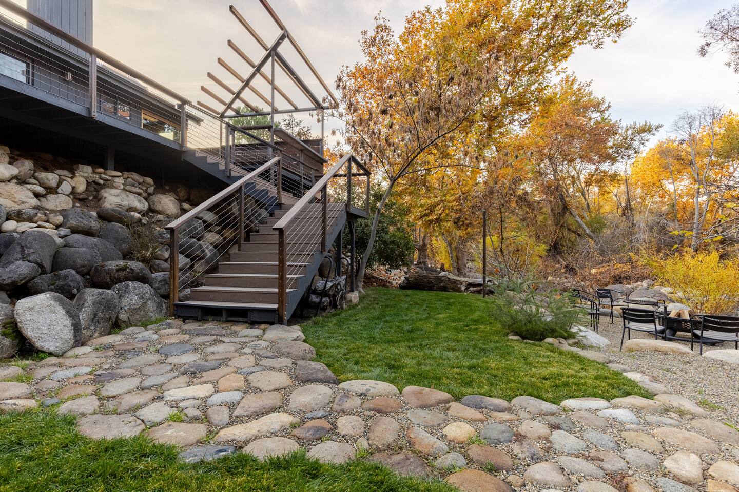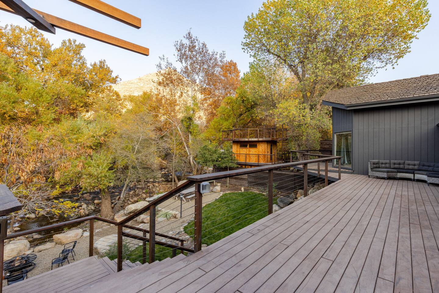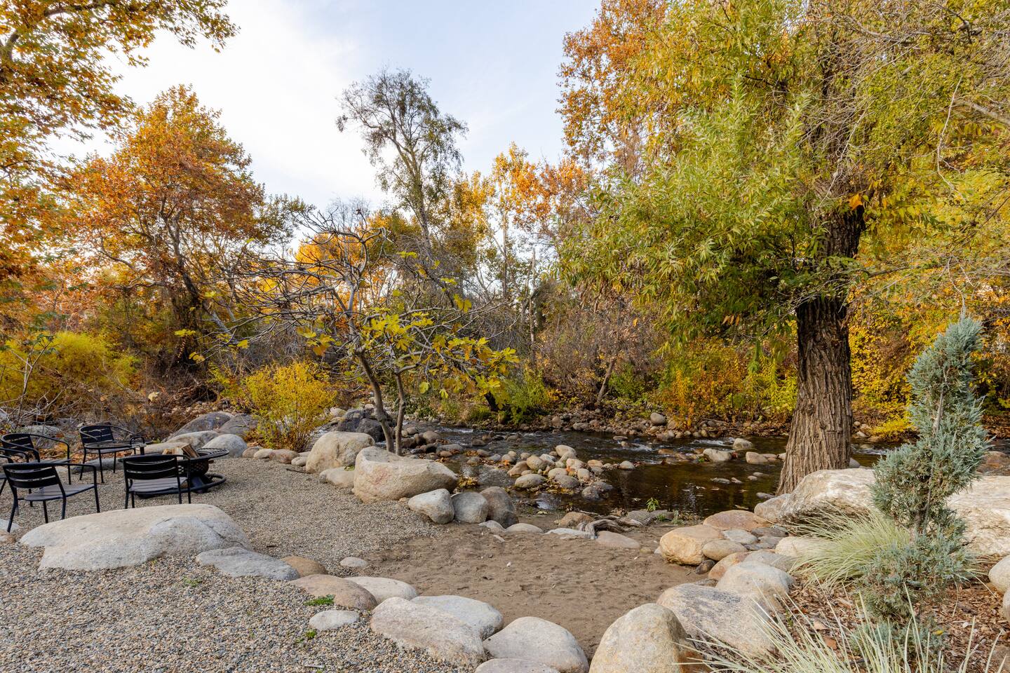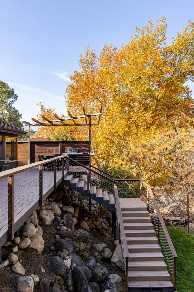 Welcome to River Soul: A Nature Retreat with Style Created by the visionary designers of "The River Island," recognized as one of AirBnB's top wish-lists worldwide, River Soul offers an exceptional riverfront retreat. Unique Riverfront Access: Experience the healing embrace of the South Fork River, providing a serene and picturesque backdrop for your stay. Modern Cabin Design: Fully remodeled to offer a luxurious escape, blending Colorado's Sky Chalet vibes with modern architecture. Indoor Common Areas: Living Room: Large relaxing sofa, board game table, vibrant decor, and a stunning river rock fireplace. Dining Room: Ideal for family gatherings beneath a charming chandelier, adjacent to a convenient kitchen bar. State-of-the-Art Kitchen: Equipped with modern features, inspired by native cultures, fostering a truly culinary paradise. Enjoy Artful Comfort Adorned Bedrooms: Rooms infused with global artwork, offering comfort with river-facing windows and plush beds. Luxurious Bathrooms: Specially crafted designs featuring rock sinks and a modern bath with river views, ensuring privacy and luxury. Premium Neighborhood Cherokee Oaks is Three Rivers' most upscale area, offering safety, wilderness, and neighborhood charm. Known for its festive parades and community spirit. Self Check-in for a seamless arrival experience. Explore, relax, and create unforgettable family memories at River Soulโa top-tier boutique Airbnb experience.