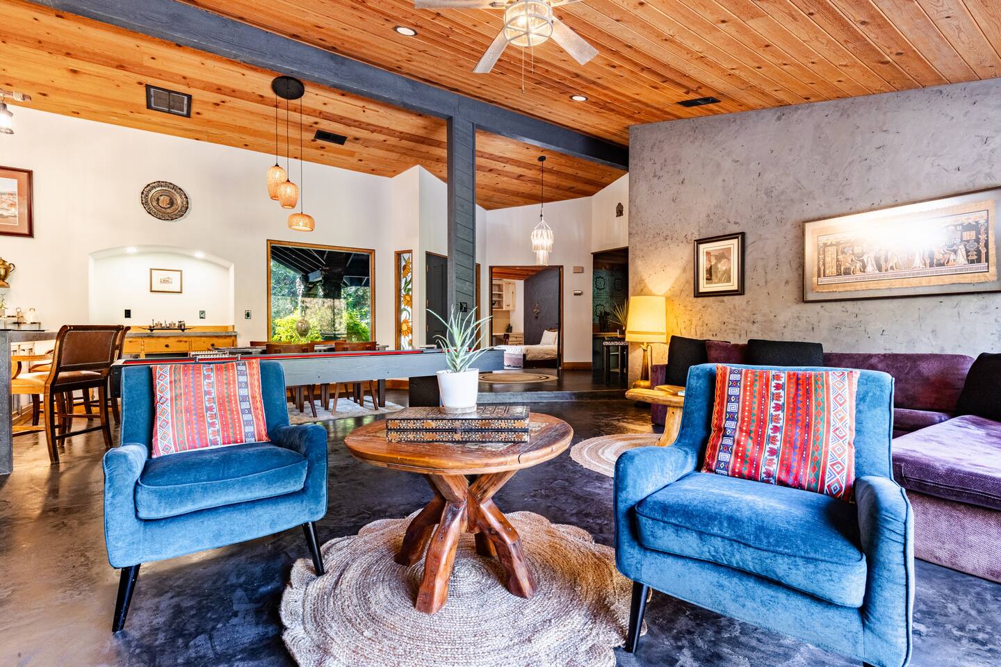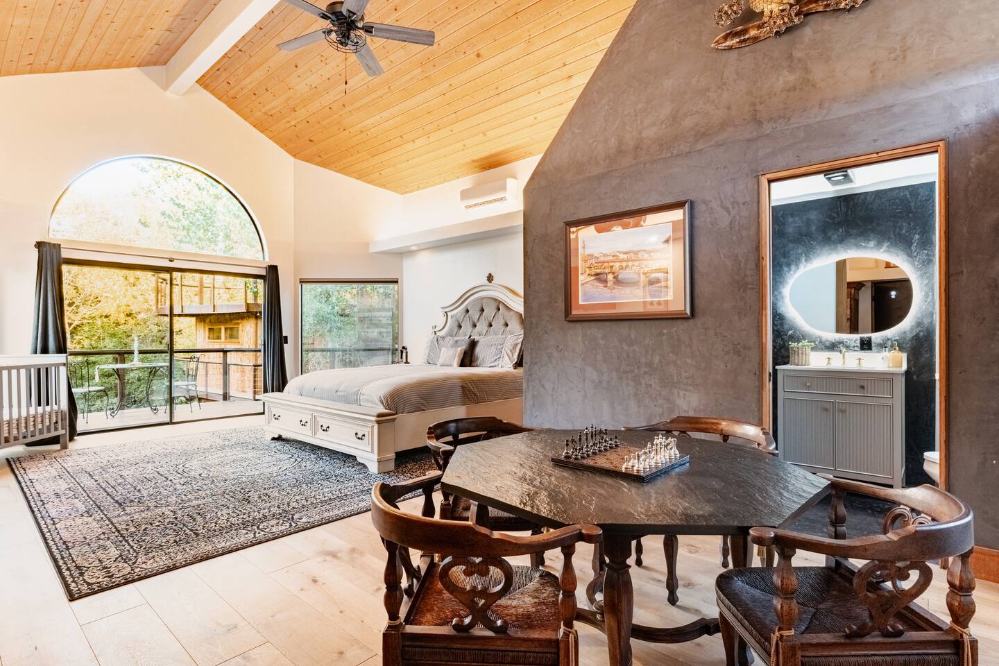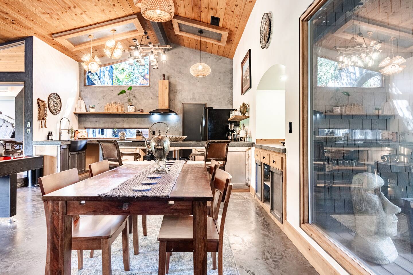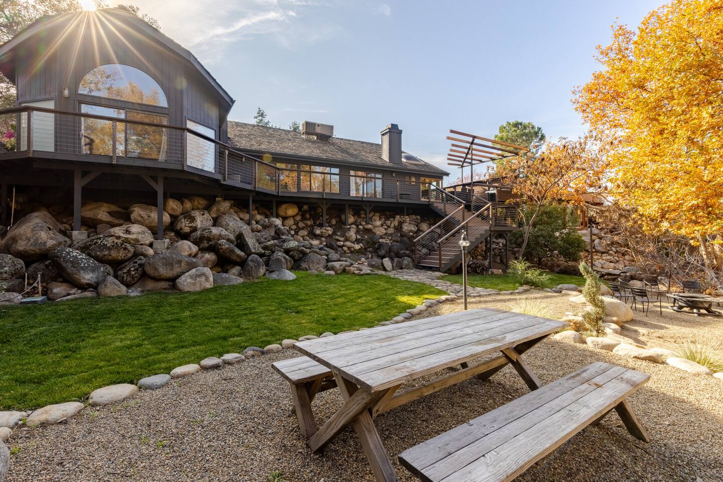 Welcome to River Soul: A Nature Retreat with Style Created by the visionary designers of "The River Island," recognized as one of AirBnB's top wish-lists worldwide, River Soul offers an exceptional riverfront retreat. Unique Riverfront Access: Experience the healing embrace of the South Fork River, providing a serene and picturesque backdrop for your stay. Modern Cabin Design: Fully remodeled to offer a luxurious escape, blending Colorado's Sky Chalet vibes with modern architecture. Indoor Common Areas: Living Room: Large relaxing sofa, board game table, vibrant decor, and a stunning river rock fireplace. Dining Room: Ideal for family gatherings beneath a charming chandelier, adjacent to a convenient kitchen bar. State-of-the-Art Kitchen: Equipped with modern features, inspired by native cultures, fostering a truly culinary paradise. Enjoy Artful Comfort Adorned Bedrooms: Rooms infused with global artwork, offering comfort with river-facing windows and plush beds. Luxurious Bathrooms: Specially crafted designs featuring rock sinks and a modern bath with river views, ensuring privacy and luxury. Premium Neighborhood Cherokee Oaks is Three Rivers' most upscale area, offering safety, wilderness, and neighborhood charm. Known for its festive parades and community spirit. Self Check-in for a seamless arrival experience. Explore, relax, and create unforgettable family memories at River Soulโa top-tier boutique Airbnb experience.