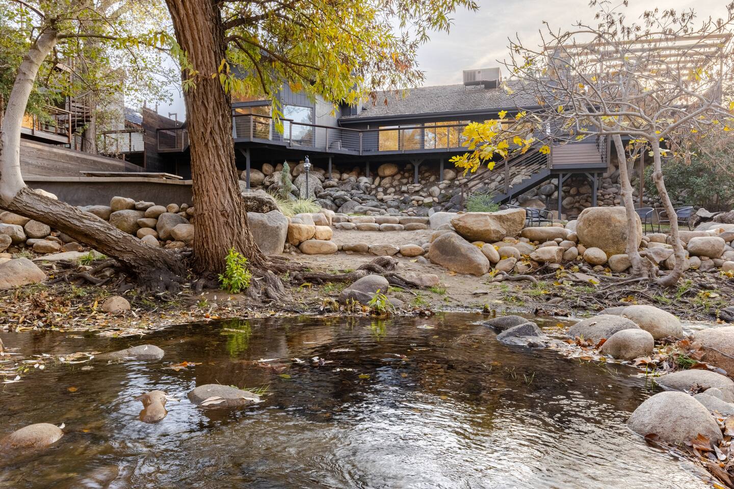 The entire home is available for guests with private and exclusive access to the riverfront area.