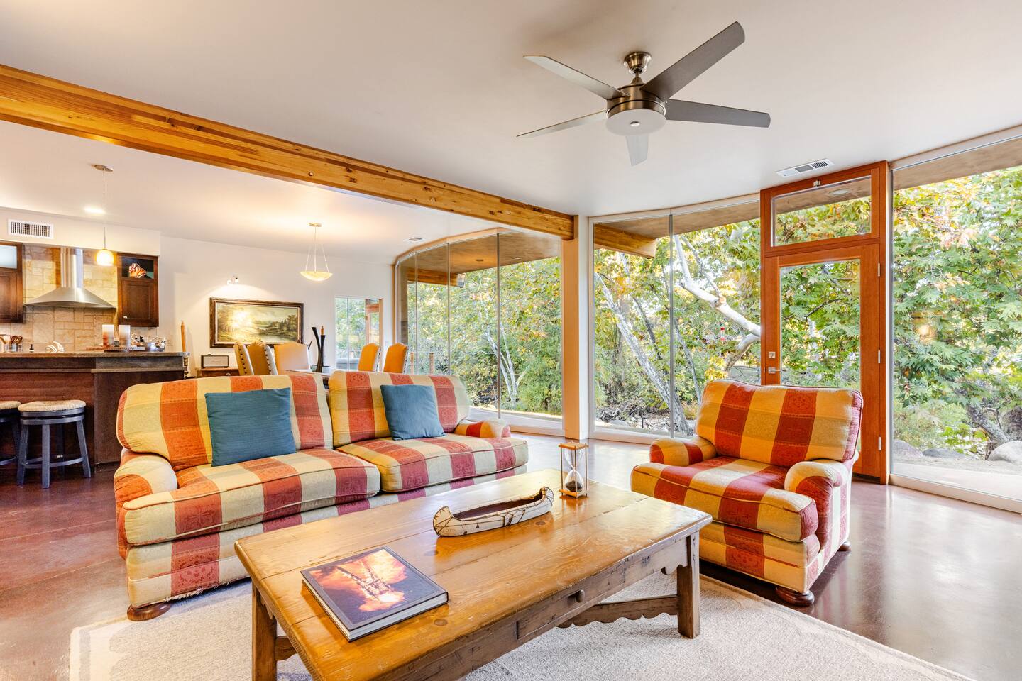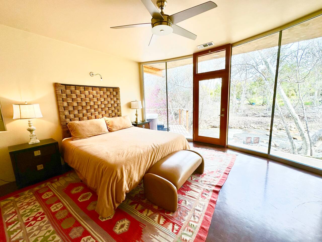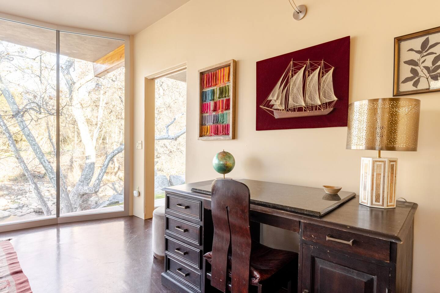 Welcome to a Modern Desert Architectural Wonder, set in Cherokee Oaks, Three Rivers' premier neighborhood. Nestled by the sacred South Fork, this property combines luxury and natural beauty for a unique getaway experience. Key Features: Stunning Design: Enjoy the spaciousness given by glass walls that frame breathtaking river views, complemented by unique architecture likened to a modern fort. Riverside Relaxation: Unwind in a hot tub almost touching the river, with private access to beautiful river beaches, perfect for swimming and picnicking. Location: Just 10 minutes away from Sequoia National Park entrance, and 30 minutes to Kings Canyon National Park. State-of-the-art Amenities: Fully equipped chef’s kitchen with top-tier appliances Luxurious accommodations enriched by original artwork and indigenous Yokut Tribe markings Floor-to-ceiling windows inviting nature inside Private gym Fire pit and picnic areas to enjoy al fresco dining Bird sanctuaries for nature enthusiasts Laundry facilities Curated Experience: Developed by G&G, recognized in Airbnb Magazine & Condé Nast Travel, ensuring attention to every detail for a boutique stay. Guest Experience: Bask in the serenity and elegance of this architectural masterpiece while exploring nearby parks and immersing yourself in the natural splendor. Book your stay now to embrace the seamless blend of modern luxury and nature's untouched beauty. A sanctuary awaits, ready to give you memories that blend the contemporary charm with nature’s timeless wonders, inviting every guest to their perfect escape.