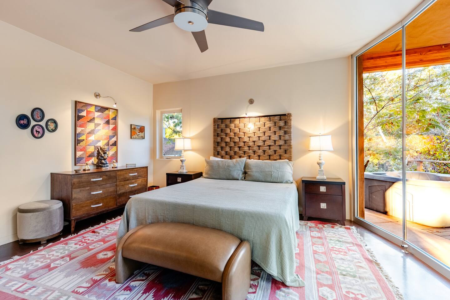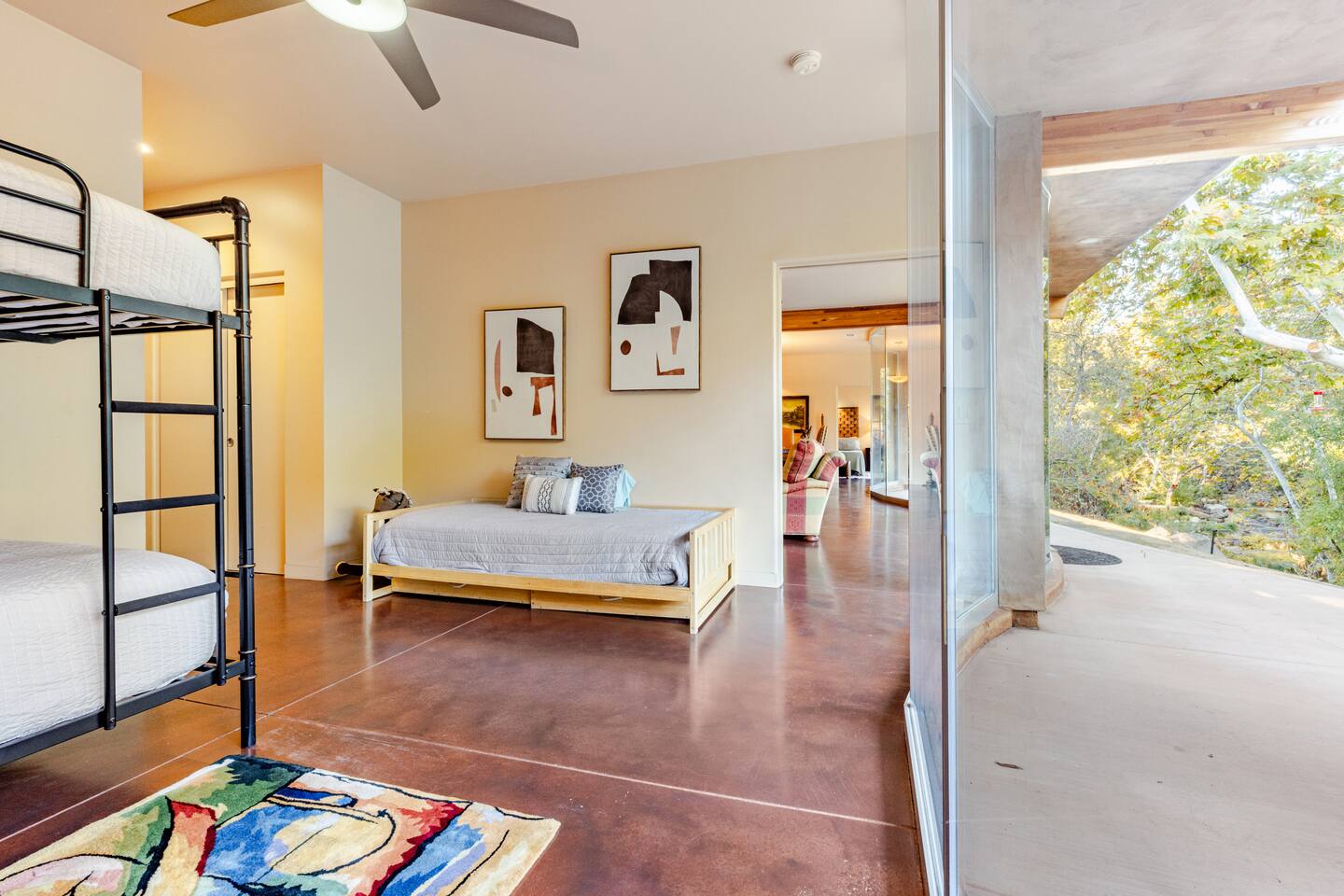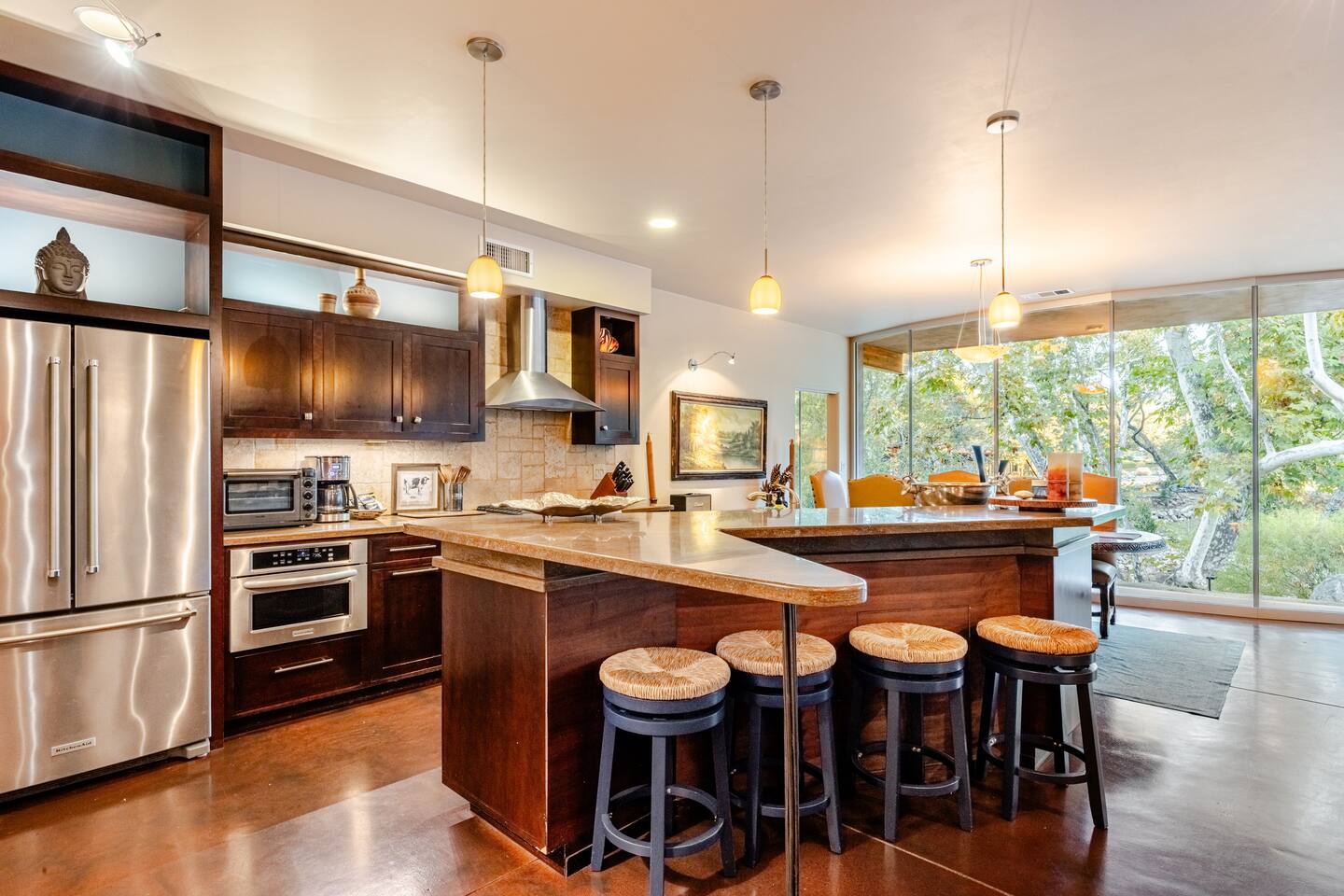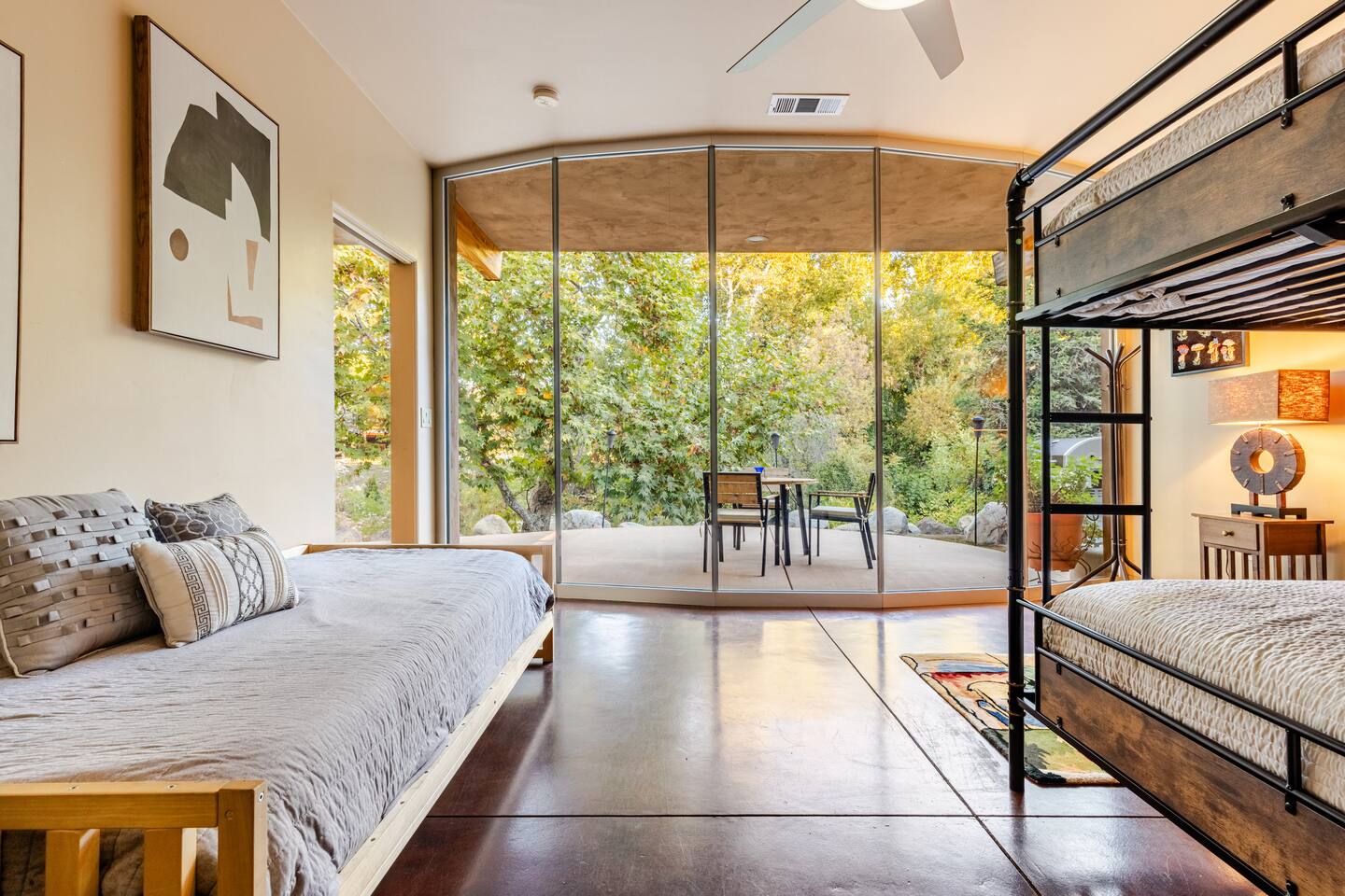 Welcome to a Modern Desert Architectural Wonder, set in Cherokee Oaks, Three Rivers' premier neighborhood. Nestled by the sacred South Fork, this property combines luxury and natural beauty for a unique getaway experience. Key Features: Stunning Design: Enjoy the spaciousness given by glass walls that frame breathtaking river views, complemented by unique architecture likened to a modern fort. Riverside Relaxation: Unwind in a hot tub almost touching the river, with private access to beautiful river beaches, perfect for swimming and picnicking. Location: Just 10 minutes away from Sequoia National Park entrance, and 30 minutes to Kings Canyon National Park. State-of-the-art Amenities: Fully equipped chef’s kitchen with top-tier appliances Luxurious accommodations enriched by original artwork and indigenous Yokut Tribe markings Floor-to-ceiling windows inviting nature inside Private gym Fire pit and picnic areas to enjoy al fresco dining Bird sanctuaries for nature enthusiasts Laundry facilities Curated Experience: Developed by G&G, recognized in Airbnb Magazine & Condé Nast Travel, ensuring attention to every detail for a boutique stay. Guest Experience: Bask in the serenity and elegance of this architectural masterpiece while exploring nearby parks and immersing yourself in the natural splendor. Book your stay now to embrace the seamless blend of modern luxury and nature's untouched beauty. A sanctuary awaits, ready to give you memories that blend the contemporary charm with nature’s timeless wonders, inviting every guest to their perfect escape.