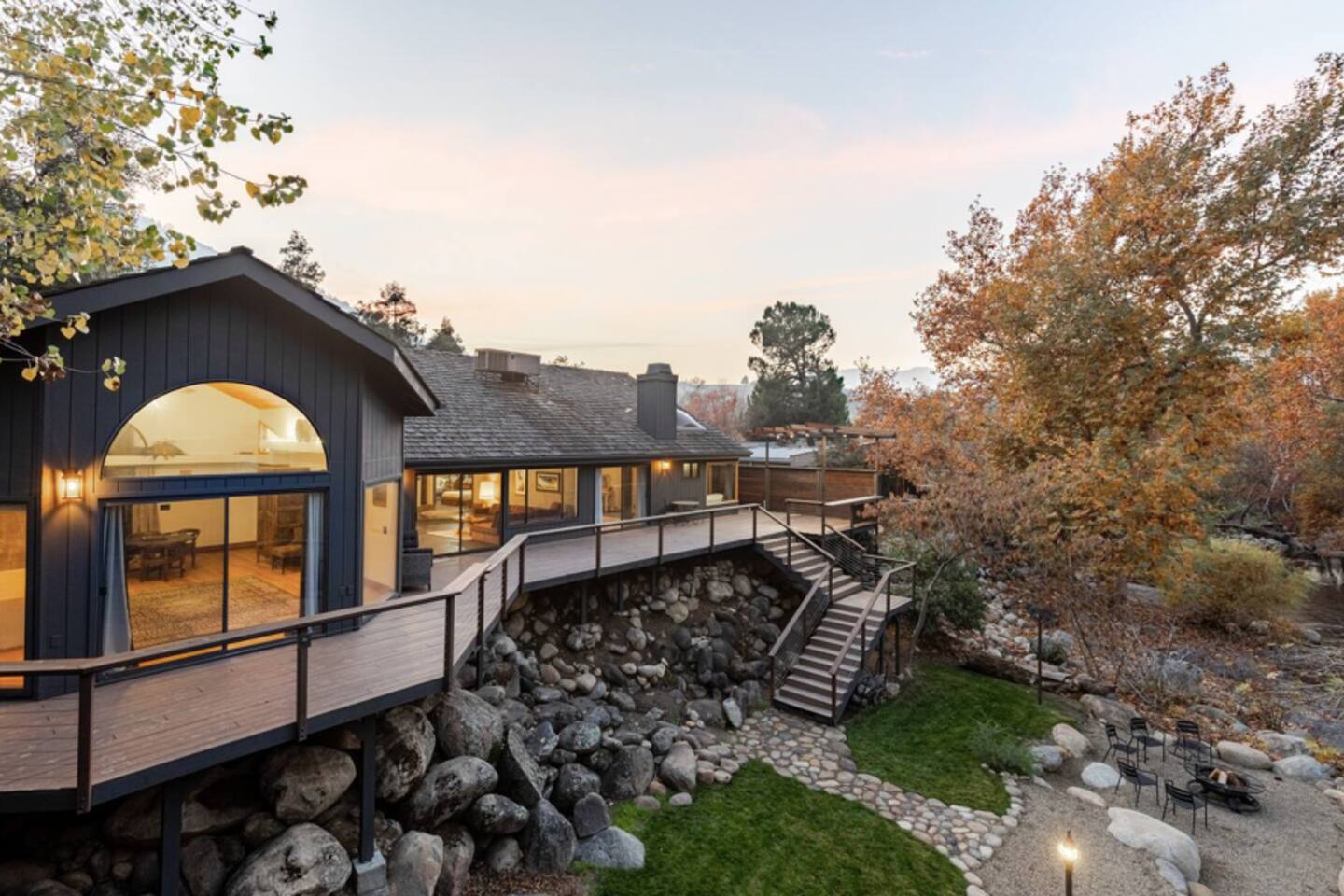 River Stars are 3 riverfront homes side-by-side offering top-tier kitchens, breathtaking river views, and access to the best swimming holes. Just 10 minutes from Sequoia National Park—immerse yourself in a world of nature, design, and tranquility. Events/large gatherings are typically not allowed at this property, but please message me if thats your interest and we can discuss it further.
