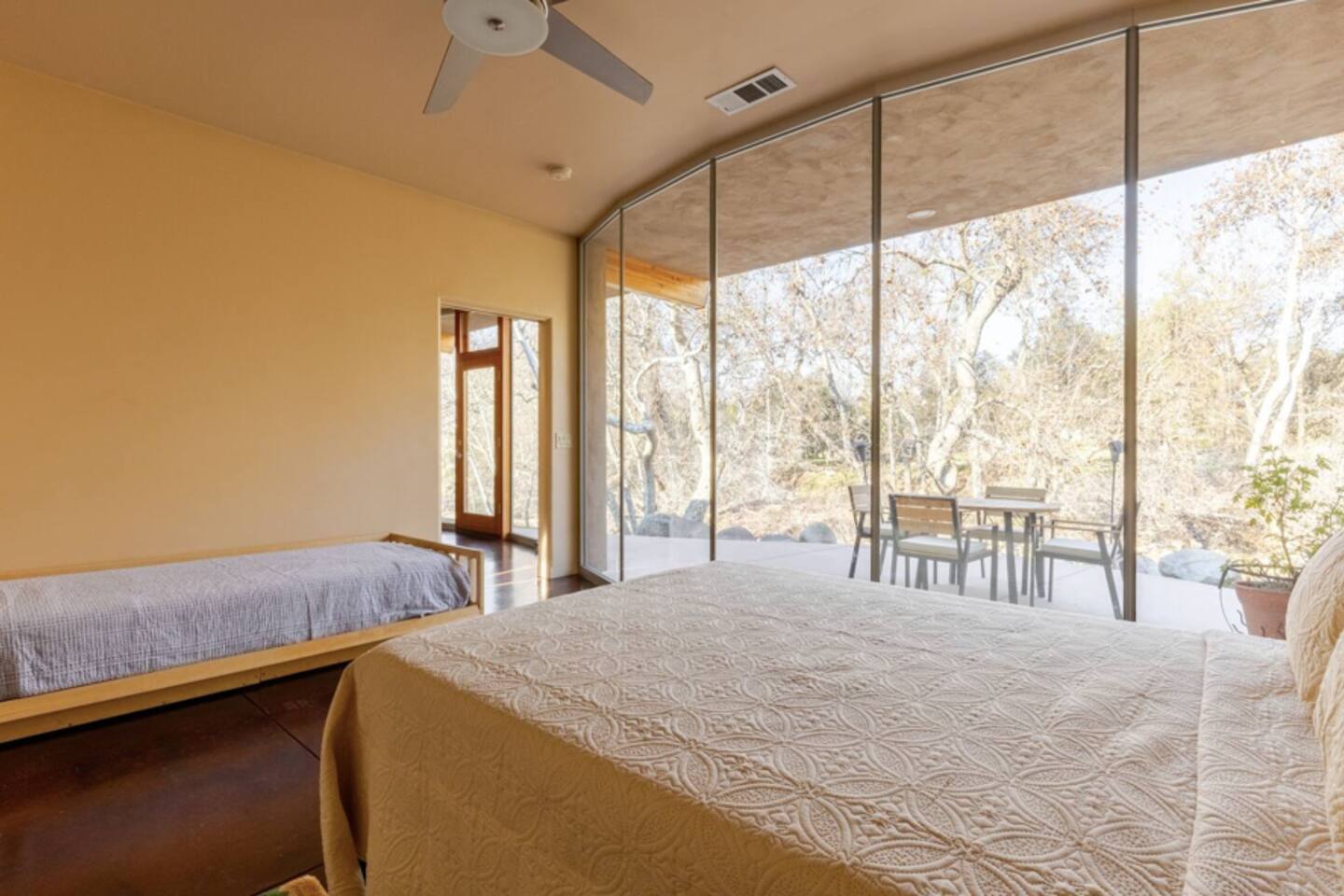 this listing is by far one of my top 5 stays ever. the homes and location are even more magical than what you see in the photos—filled with details, art and fully immersed in nature. it’s also super close to sequoia, which was incredible.